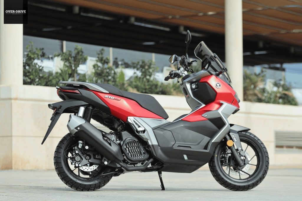 ווג SR1 ADV מתגלגל הדומה לגרסה הרגילה על שילוב של חישוקי 14 אינץ' מלפנים ו-13 אינץ' מאחור, כאשר לצמיגים פרופיל מעט קרבי וזה הקדמי הוא בחתך 89 לעומת 70 בדגם הכביש, מה  שתורמם למרווח גחון של 16 ס"מ. יחידת ההנעה זהה לזו שבדגם כביש. מדובר במנוע בנפח 124.9 סמ"ק עם שני שסתומים, הזרקת דלק וקירור נוזל המספק 11.7 כ"ס.