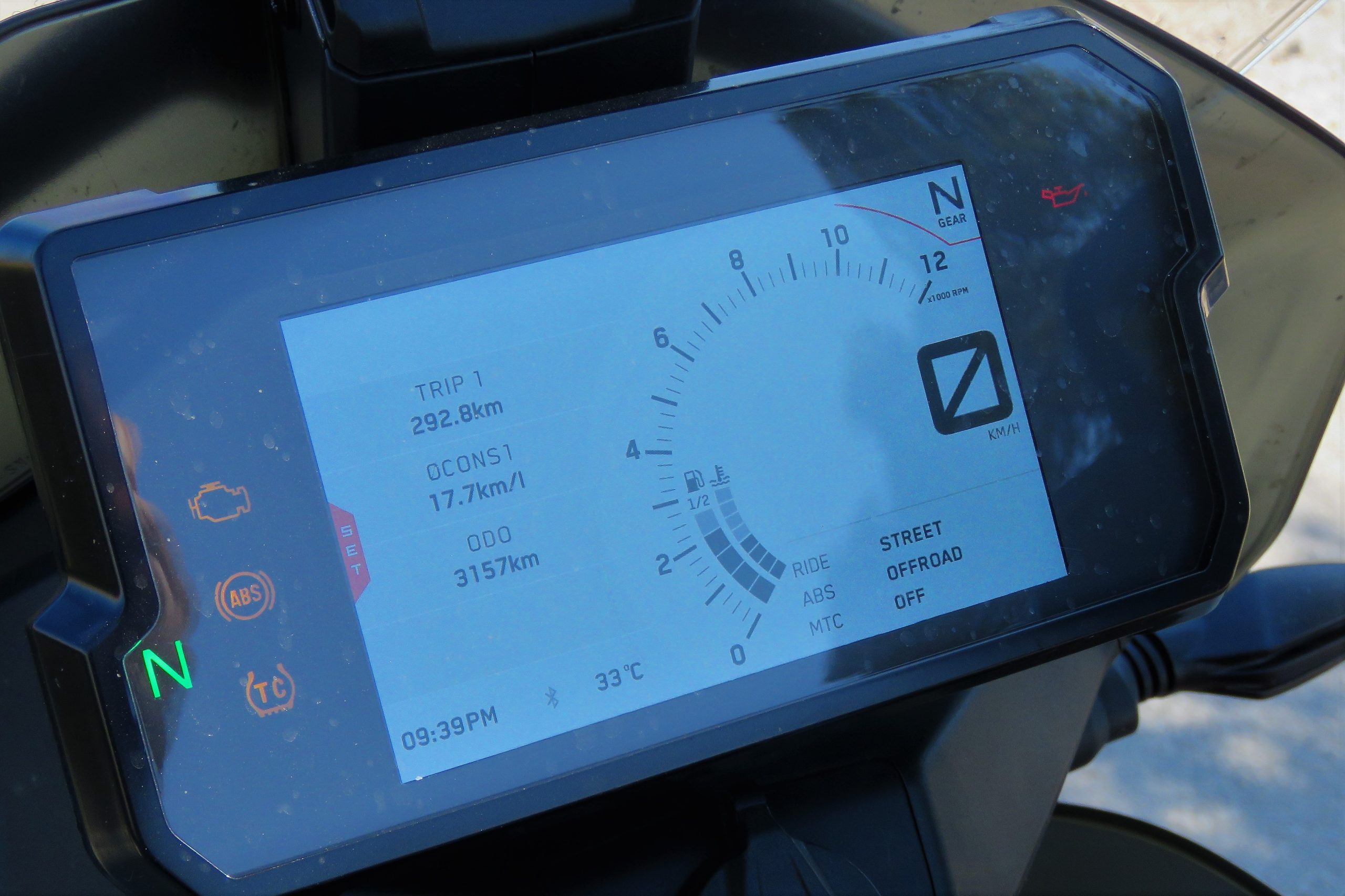 אחרי שמתגברים על העיצוב ומתיישבים על האופנוע הזה מגלים כמה דברים. הדבר הראשון שבולט כאן זו תנוחת הרכיבה. זו לא התנוחה האדוונצ'רית הקלאסית. הרגליים מכופפות יותר, הידיים נשלחות לפנים רחב, קרבית. יחד עם המושב הקשה והמבנה הכללי הצר והשטוח זה מרגיש כמו אנדורו שצמח במימדים.