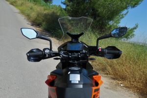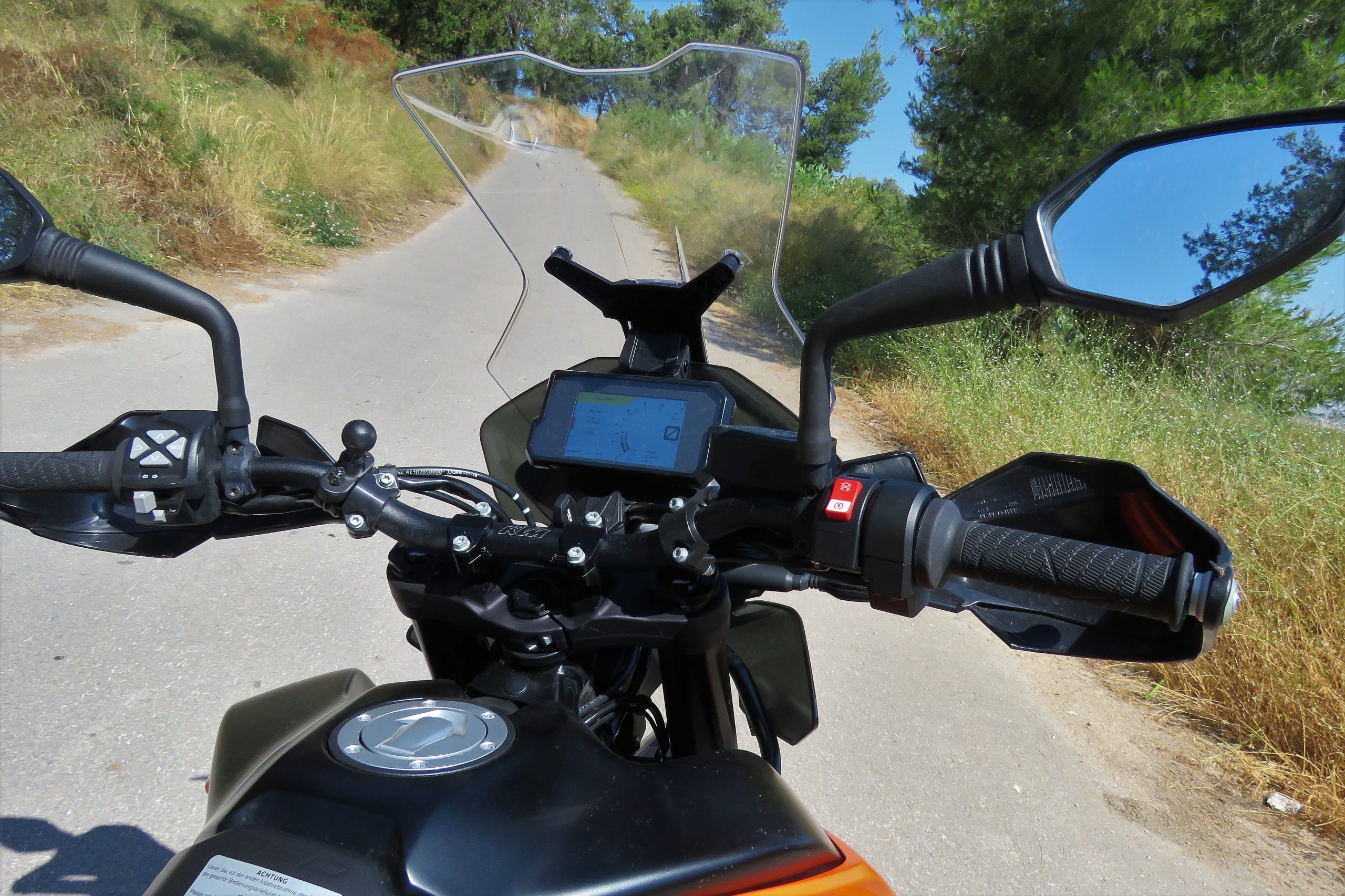 כמו שאמרתי יש תחושה ברורה שק.ט.מ רצו כאן חבילה שלמה, כזו שכוללת כל תוספת וכל אפשרות. ואכן אפשר למצוא כאן מצבי רכיבה, abs לפנייה, בקרת משיכה (שתי המערכות ברות ניתוק) ותחושה של מעטפת אלקטרונית מלאה. כל אלו נשלטות בצורה אינטואיטיבית מצידו השמאלי של הכידון. יאללה, אפשר להמשיך לרכוב.