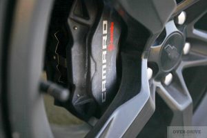 החוויה נפסקת על כבישים משובשים, הכיול הנוקשה פשוט מנדנד את הגוף, משפיע על קו, ומגלה שהמתלה האחורי קצת רך יותר מזה שמלפנים והתחושה לא נעימה. הקמארו פשוט קשוחה מדי לכבישים לא מושלמים. הבלמים – האופציונלים במכונית המבחן – אדירים, עם דוושה שדורשת קצת כוח, כמו זו של הגז, אבל מאפשרת מינון מדויק מאוד של עוצמת הבלימה. לחוליגנים שבינכם נספר שאין כאן דיפרנציאל מוגבל החלקה, אבל זה לא ממש מפריע לשחק עם הזנב שלה בין מהירויות נמוכות לבינוניות. ההגה מרגיש קצת קל מדי בנעילה נגדית אבל כל האקט נשלט ומהנה מאוד.