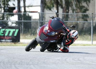 אם מדברים על כלים אחרים עם שלושה גלגלים, זה מזכיר לנו דוגמה שלילית למדי. קאן-אם ספיידר נראה פגז. שנייה לפני שמניפים עליו רגל, אפשר להיות משוכנעים שזה הולך להיות כיף. וכגודל הציפייה גודל האכזבה. הספיידר לא רוכן לתוך הפניה, יושב על שלושה גלגלים עם חתך רבוע ולא ממש רוצה לפנות. לא רק שזה מרגיש כאילו אי אפשר לסובב את הדבר הזה, הוא גם לא מגיב טוב לכביש לא מאוזן כשכל גלגל קדמי מושך אותך לכיוון אחר.
