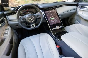 בתא הנוסעים תפגשו עיצוב נקי בסגנון היי-טקי, עם מיעוט של מתגים, לוח מחוונים דיגיטלי "12.3 ומשטח מולטימדיה מרכזי ענק בקוטר "19.4 (אך גודל המסך שבתוכו "14), הכולל קישוריות לאנדרואיד אוטו ואפל קארפליי. רשימת האבזור כוללת כסטנדרט: מושבי עור מלאכותי, מושבים קדמיים מתכווננים חשמלית, מחוממים ומאווררים, משטח טעינה אלחוטי לנייד, תאורת אווירה ב-64 גוונים, חישוקי גלגלים "19, דלת תא מטען חשמלית ועוד. רשימת האבזור הבטיחותי כוללת את מרבית מערכות הבטיחות הפופולריות כיום בשוק, לרבות מצלמות 360 מעלות ולמכונית תוצע אפליקציית תפעול טלפונית בסגנון של טסלה.