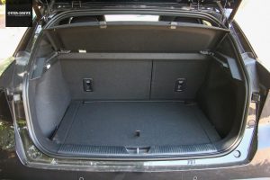 רכב המבחן הגיע אלינו ברמת הגימור הבכירה. לתא הנוסעים אין תחושה ספורטיבית, למרות גלגל הגה רבוע בחלקו (אולי הומאז' לאוסטין אלגרו) ומושבים מוצלחים בריפוד משולב דמוי עור עם תפרים כחולים. העיצוב מינימליסטי, עם סידור מוכר של לוח מחוונים דיגיטלי 7 אינטש ומערכת מולטימדיה עם מסך 10.25 רוחבי, שניהם סובלים מתצוגה וגופנים קטנים מדי. הפריט העצובי הייחודי ביותר הוא המגש עליו ממוקמת חוגת בורר ההילוכים. בחירת הצבעים קודרת, אבל ניתן לקבל גם תא נוסעים בגוונים בהירים יותר. איכות ההרכבה טובה והפלסטיקה מרגישה מוצקה, אם כי למעט חלקו העליון של לוח המחוונים רוב הפלסטיקה היא מהזן הקשיח והפחות נעים למגע.