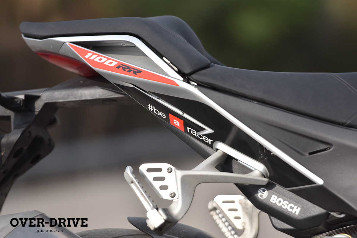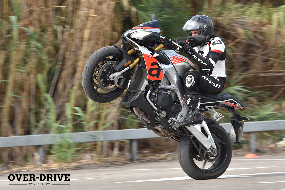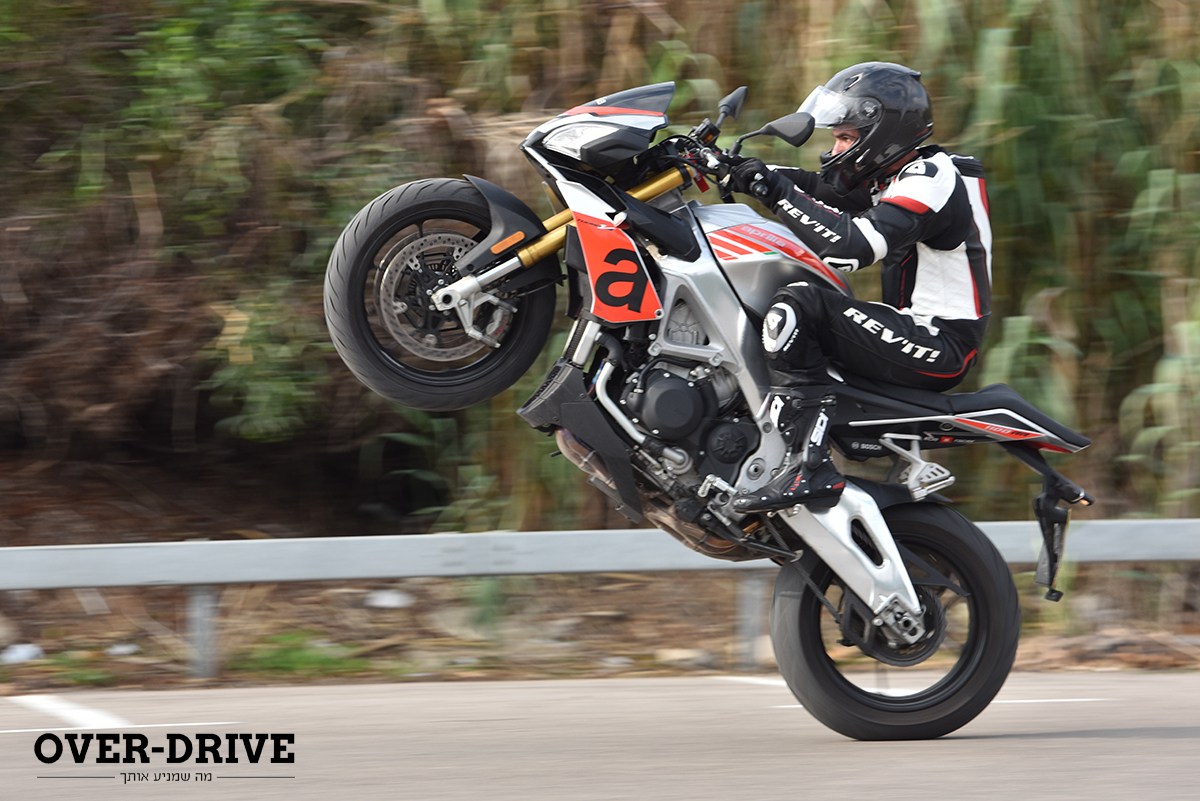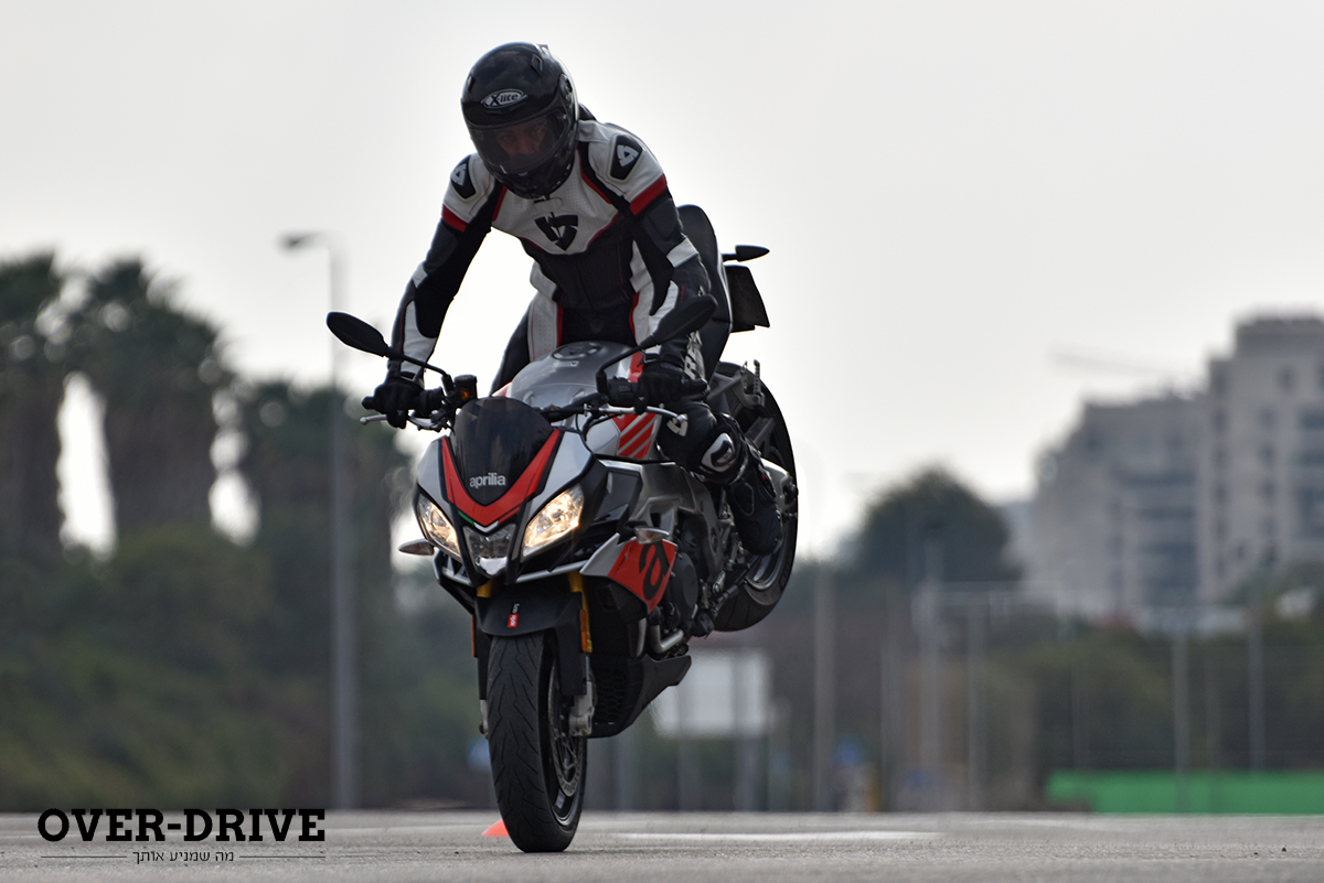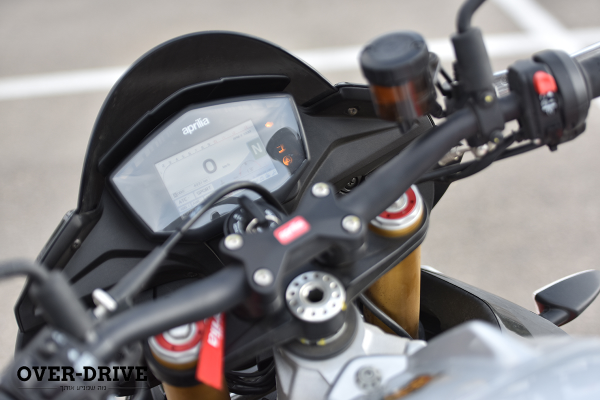 בתוכה יש לך את כל היציבות והספיגה שתרצה. הפידבק טוב, אבל לא מושלם. יש תחושה קבועה שהפרונט הזה קליל. וכשאתה פותח גז החוצה אתה מודה לחבר’ה באפריליה על משכך ההיגוי שיש כאן. בלעדיו אני לא רוצה לחשוב מה היה קורה.