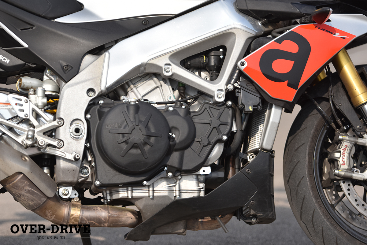 מקומו של המפלט הגדול בלתי נמנע אבל אפריליה שיחקו עם רכיבים במנוע (במטרה להוריד חיכוך) ועם מערכת ניהול המנוע בכדי לתת למנוע הזה לטפס עוד 500 סל”ד לפני המנתק. התפוקה לא נפגעה ולא תגרום לאף בר-דעת להתלונן – 175 כ”ס ב- 11,000 סל”ד ולא פחות מ-12.3 קג”מ ב-9,000 סל”ד.