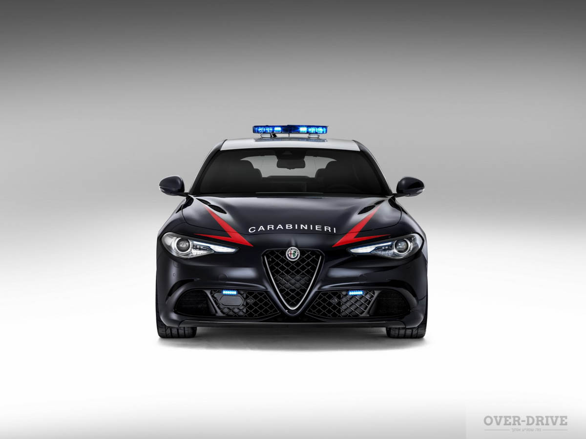 שתי המכוניות האמורות הן מדגם מסקרן ומלהיב במיוחד, אלפא רומיאו ג’וליה QV. כמו שכבר קראתם כאן בעבר זה הדגם הבכיר של הסדאן החדשה והוא מפיק למעלה מ-500 כ”ס ויורד מ-4 שניות במיאוץ ל-100 קמ”ש. אלפא ציידו את הג’וליה הזו בכל אביזר משטרתי – פנסים נוספים, תאורה על הגג, מערכת קריזה ומחשבים בתוך תא הנוסעים.