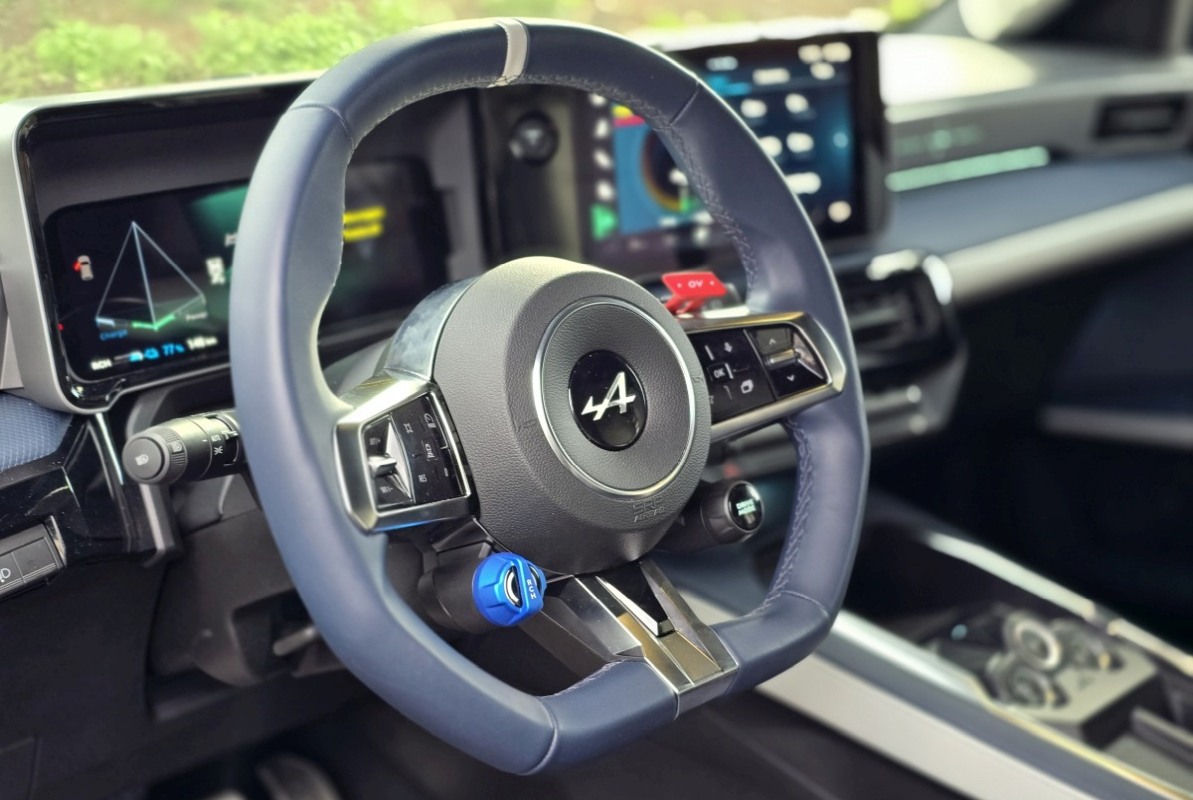 אבל ככל שהקצב עולה, מתחילות לצוף גם המגבלות. ביציאה מפניות, בעיקר הדוקות עם אספלט באיכות ירודה או אספלט רטוב שליווה אותנו במהלך רוב ימי המבחן, קשה ל-A290 להוריד את הכוח בצורה נקייה. אלפין ניסתה לפצות על כך באמצעות מערכות בקרת משיכה מבוססת בלימה, אבל זה לא אותו הדבר. במקום פתרון מכאני טבעי, מקבלים תיקונים אלקטרוניים. הבקרות מתערבות לא מעט, וגם כאשר הן עושות את העבודה ומונעות החלקה מיותרת, התחושה היא של מערכת שמנהלת את הסיטואציה עבורך, ולא של רכב שאתה שולט בו עד הקצה. זה בטוח, זה יעיל, אבל זה גם קצת מרחיק אותנו עוד יותר ממלאכת הנהיגה. למעשה, במקום תחושת “נעילה” שמושכת את הרכב תחת גז בפניה, מתקבלת תחושה של מאבק עדין אך מתמשך בין הצמיגים, הכביש והאלקטרוניקה. פתרון הולם יותר לבעיה, שעובד משמעותית טוב יותר, היה מגיע בדמות דיפרנציאל מוגבל החלקה, כמו זה שמוצע באלפא רומיאו ג’וניור ולוצ’ה.