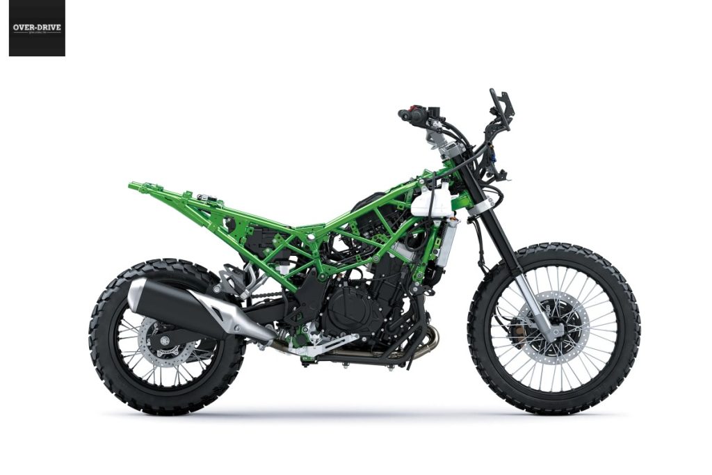 המנוע שוכן בשלדת צינורות חדשה לחלוטין המורכב ממכלול עליון אורכי אליה מחוברת עריסת צינורות מלבניים המקיפה את המנוע. מלפנים ישנו מזלג קדמי הפוך מתוצרת קאייבה בקוטר 43 מ”מ עם מהלך של 210 מ”מ ומאחור בולם מרכזי בעל מהלך של 200 מ”מ ללא אפשריות כיוונון. מערכת הבלימה כוללת דיסק קדמי בודד בקוטר 300 מ”מ מלפנים ו-230 מ”מ מאחור עם מערכת ABS הניתנת לניתוק חלקי עבור רכיבת שטח. בקאוואסאקי לא פירטו לגבי מערכות עזר אלקטרוניות נוספות.