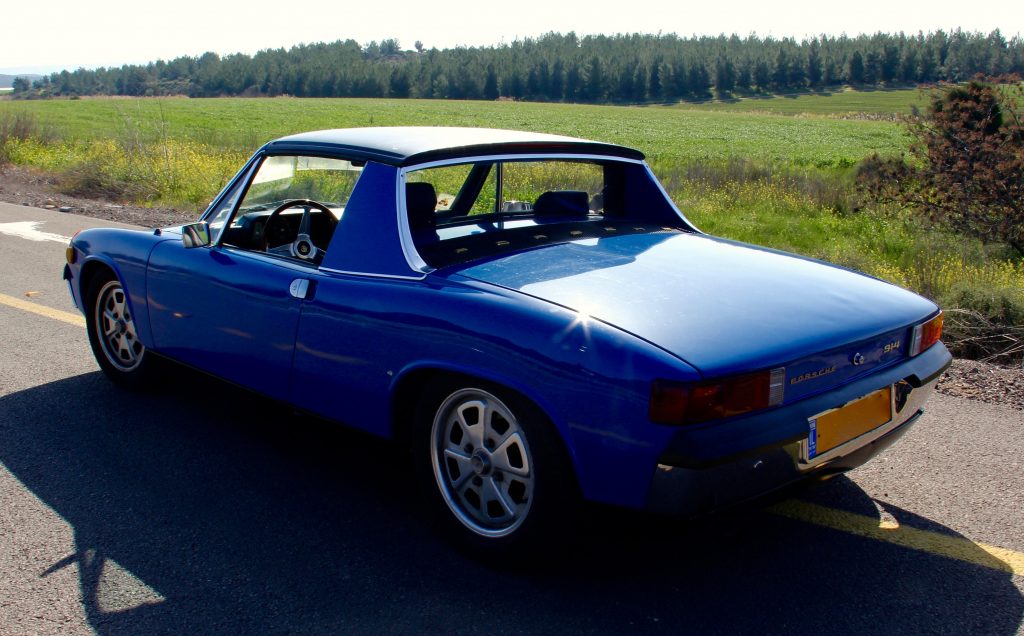 מול המפלצת השחורה מלאת השרירים ורבת כוחות הסוס, ניצבת ה-914/4 צנומת המימדים, שנת יצור 71, עם דם אצילי כחול, מנוע מרכזי בנפח 1.7 ליטר, 4 צילינדרים ו-79 כ״ס, אבל כאן הוא מתוצרת פולקסוואגן. המכונית מתוחזקת היטב ובנאמנות ע״י בעליה שהביא אותה מקליפורניה בשנת 2004.