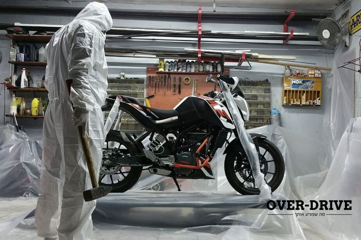 אז לעצור לשטוף אופנוע אצל גילי זה משהו מאוד טבעי עבורי. אבל השטיפה הזו הייתה שונה. כי המטרה כאן לא הייתה לנקות את האופנוע, אלא לגלות פגיעות, כשלים, או בלאי שמסתתר מתחת להררי הלכלוך (ואל תשכח את היונים…). אז הקרצוף החל, והק.ט.מ החל לחייך שוב ולהראות סימני חיוניות. הלבן הפך לבן שוב, הכתום חזר לצעוק והאופנוע נקי ונראה כמו חדש.