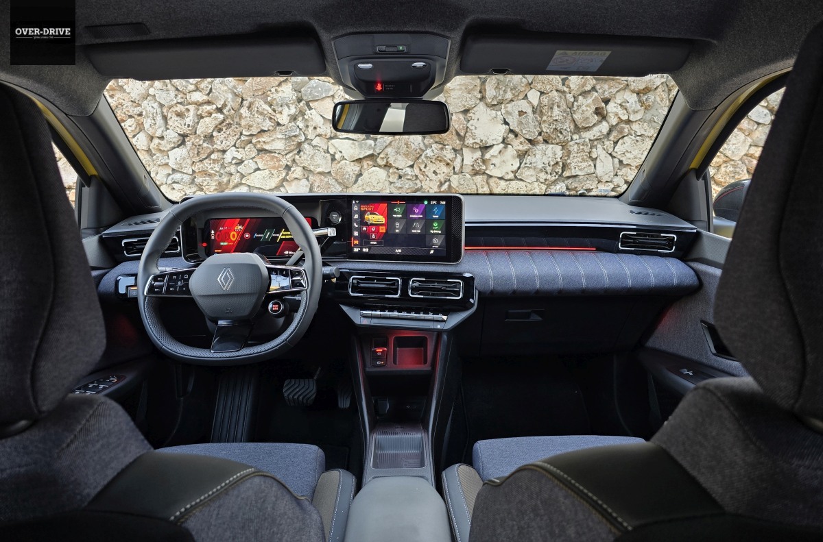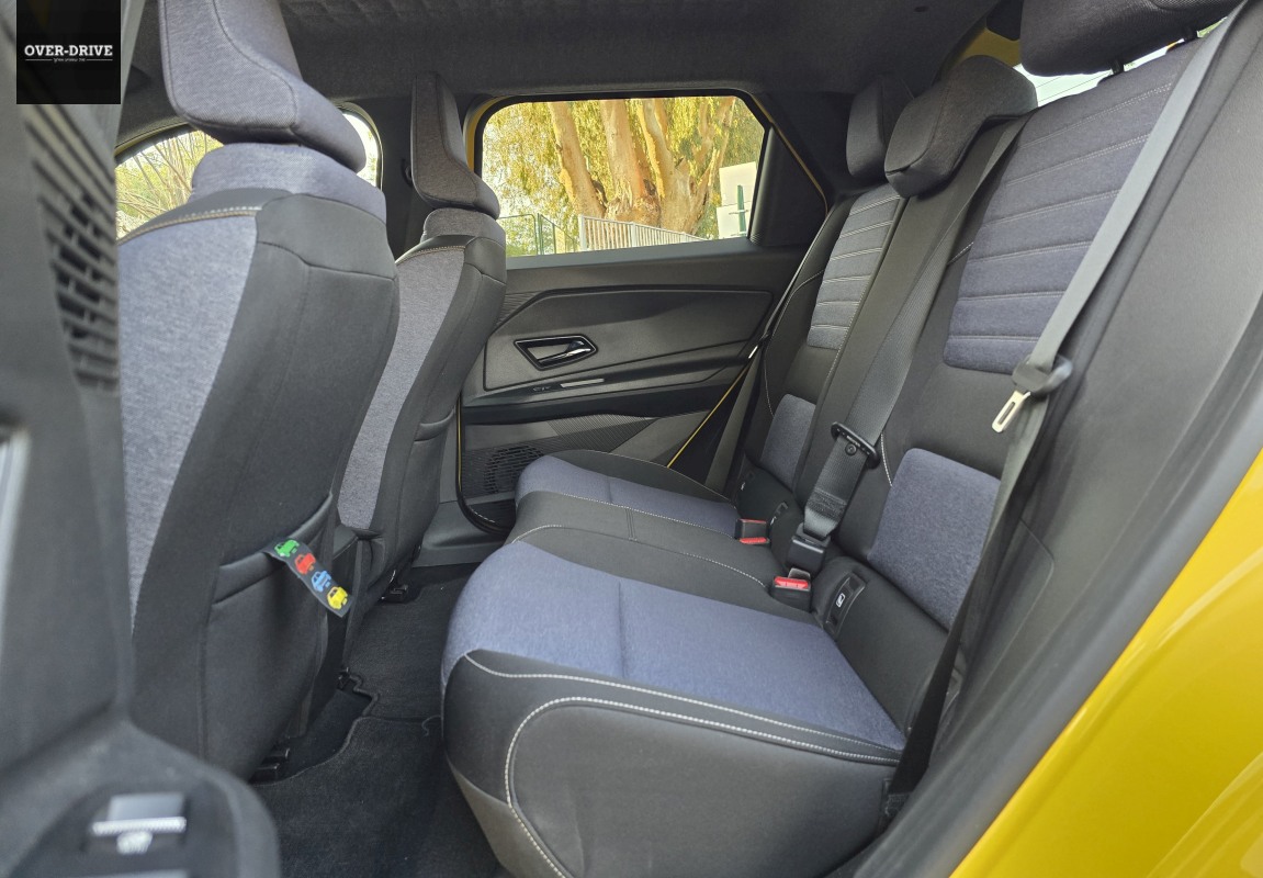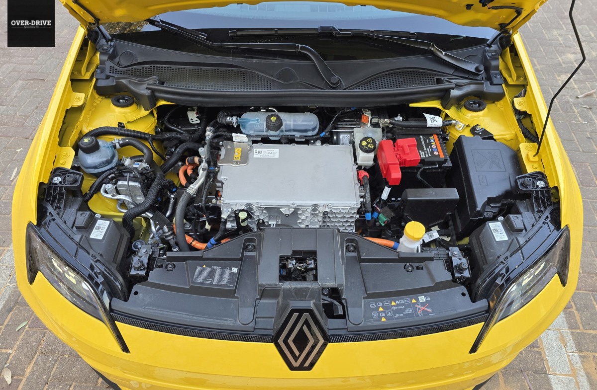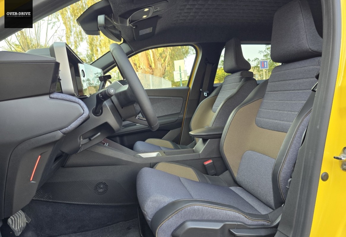 בתא הנוסעים האווירה הייחודית ממשיכה. החלל מודרני, מעוצב ומוקפד. יש מסכים גדולים שהם הכרח כיום, מערכת מולטימדיה עדכנית ועוזר אישי מבוסס AI. אבל בין כל המודרניזציה, יש גם רמיזות קטנות לעבר. קווים, מרקמים וצורות שמזכירים את המקור בלי להתאמץ יותר מידי. בסביבת הנהג התחושה נעימה ומרווחת יחסית, אך במושב האחורי המצב פחות מזהיר. הוא צפוף מאוד ואין בו כמעט אבזור פרט למחווה משעשעת: לשונית קטנה בגב מושב הנהג ועליה הדפסים של דגמי רנו 5 מהעבר. כאילו אנשי רנו אומרים לך: “נכון, צפוף פה, אין כאן אבזור… אבל היי, אתה חלק מההיסטוריה. “