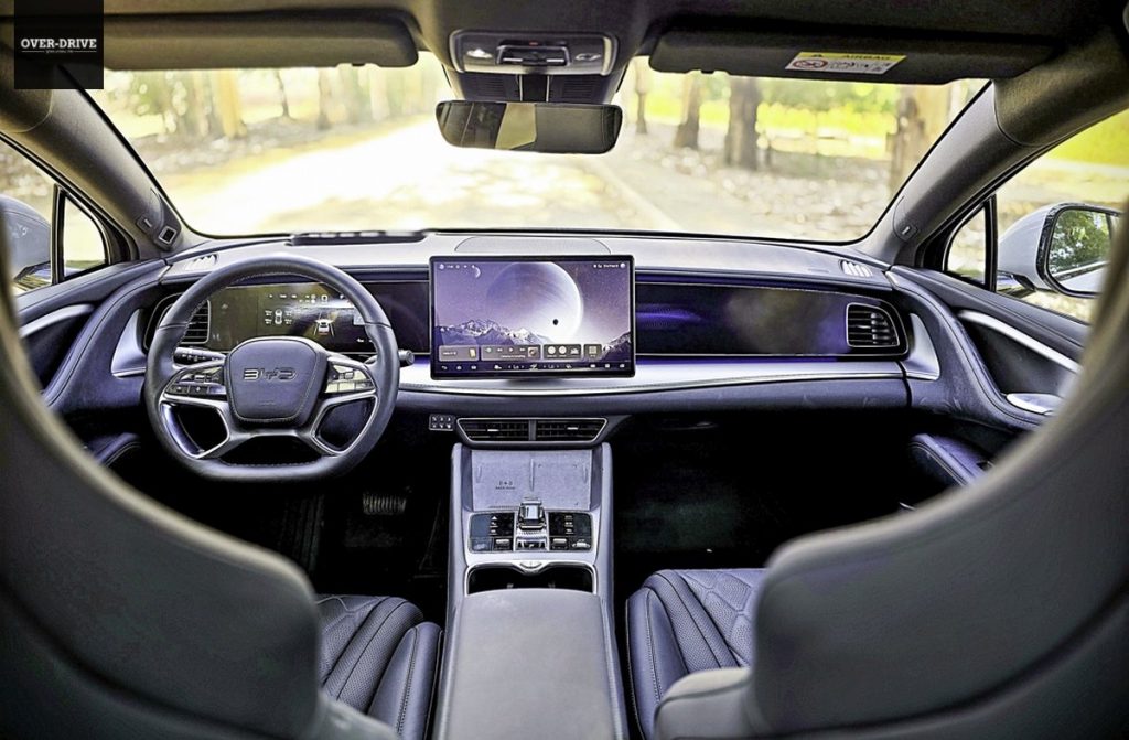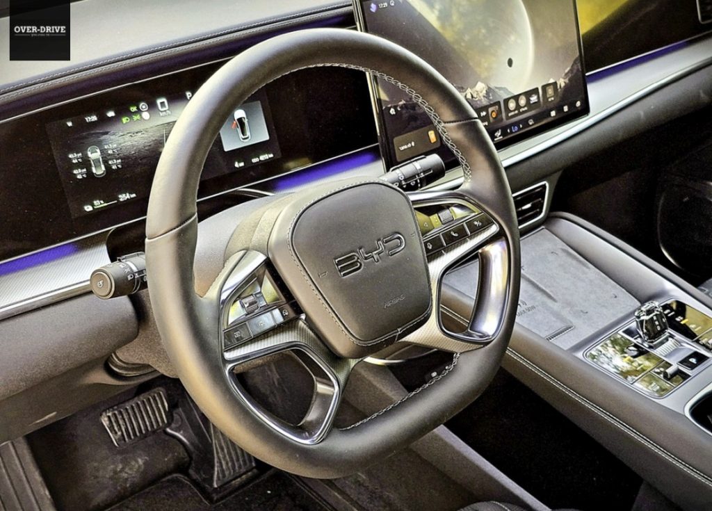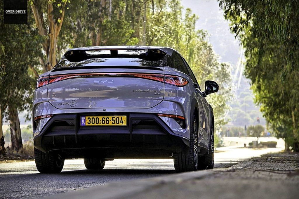 עם זוג מנועים, קדמי ואחורי, המפיקים יחד 530 כ”ס ו-70.4 קג”מ, הסיליון 7, למרות משקל עצמי הנושק ל-2.5 טון, מספקת תאוצות טובות למדי בכל מצב. 4.5 שניות מעמידה ל-100 קמ”ש לחובבי המספרים. אבל איך העסק הזה, במשקל הזה, מתנהל בכביש המפותל? הכביש שנבחר הוא 9977. לא הבחירה הברורה מאליה, אבל חבר סיפר לי הוא נסלל לאחרונה באספלט טרי, כל כך טרי שריח הסלילס עוד נישא באוויר. BYD סיליון 7 טיפסה במעלה ההר מהר בקלילות מעצבנת ומהר יותר מלא מעט מכוניות ספורטיביות עליהן נהגתי לאחרונה. גם התנהגות הכביש היתה טובה, ובפניות ההדוקות הזנב בחר להדק את קו הפניה באמצעות לחיצה על הדוושה הימנית. המתלים האדפטיבים “גילחו” לא מעט ממשקל המכונית, באופן וירטואלי כמובן, ותרמו להיגוי המדוייק, לכניסה לא מהוססת לפניות ולבטחון גבוה מאד מאחורי ההגה. לאותו בטחון תרמה גם העובדה שכל 530 כוחות הסוס יורדים אל הגלגלים רק לאחר שתיישרו את ההגה, מעין מנגנון שמונע מאנשים לא מנוסים לבצע טעויות יקרות.